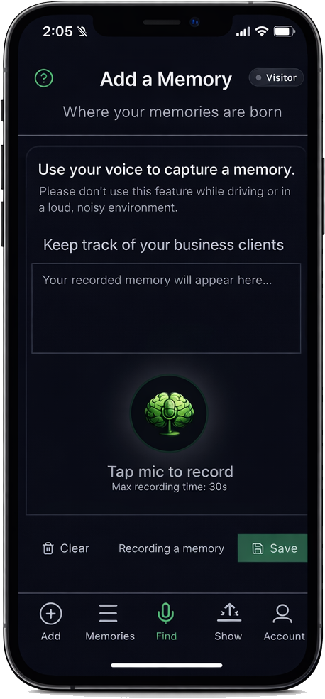 Imagine meeting someone new, having a great conversation, and never having to worry about forgetting their name, their kids’ names, or what you talked about. My Memory captures all those details with just your voice and lets you recall them instantly whenever you want. It’s like having a personal memory assistant in your pocket.